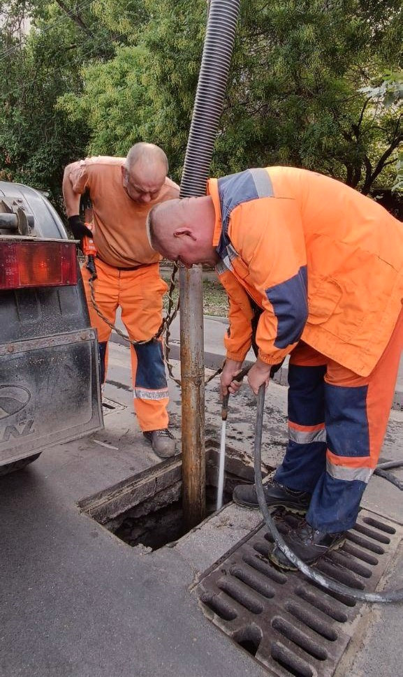 Спеціалісти КП «Міські дороги» займаються очищенням решіток дощоприймачів, зливових колодязів і колекторів. Вони вручну та за допомогою спеціальної техніки прибирають пісок і бруд, які дощова вода принесла на вулиці міста.