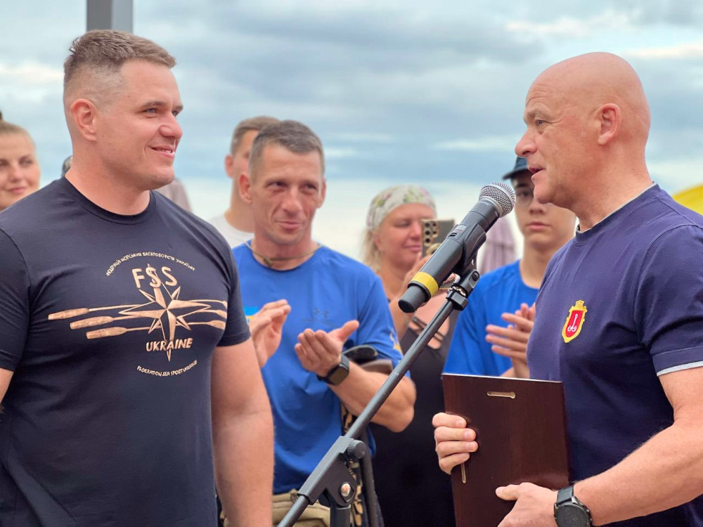 Під час заходу меру Геннадію Труханову та Віталію Голодку вручили подяки за їхній внесок у розвиток адаптивного веслування.